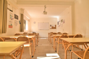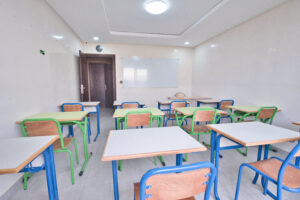 La première chose que l’on remarque en entrant dans l’école est la présence de salles de classe modernes et bien équipées. Chaque salle de classe est équipée de chaises et de tables confortables pour les étudiants, ainsi que de tableaux blancs interactifs pour faciliter l’enseignement
